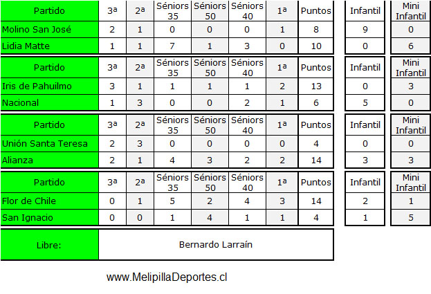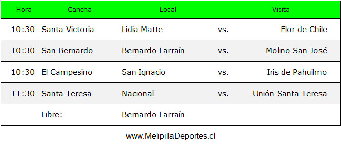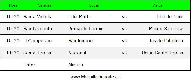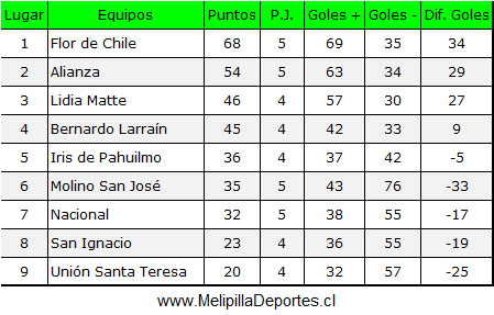 <div class="alert alert-warning"><strong>Resultados 5ª fecha</strong></div> <img class="alignnone wp-image-60410 size-full" src="https://www.melipilladeportes.cl/3.0/wp-content/uploads/2026/04/fm26019.jpg" alt="" width="623" height="425" data-pin-no-hover="true" /> <div class="alert alert-warning"><strong>Tabla de posiciones</strong></div> <img class="alignnone wp-image-60411 size-full" src="https://www.melipilladeportes.cl/3.0/wp-content/uploads/2026/04/fm26020.jpg" alt="" width="449" height="287" data-pin-no-hover="true" /> <div class="alert alert-warning"><strong>Programación 6ª fecha, domingo 26 de abril de 2026</strong></div> <img class="alignnone wp-image-60412 size-full" src="https://www.melipilladeportes.cl/3.0/wp-content/uploads/2026/04/fm26021.jpg" alt="" width="666" height="289" data-pin-no-hover="true" />