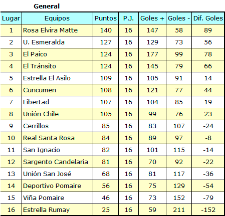 • Tabla de Posiciones