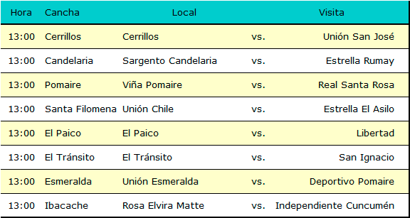 Programación 17ª fecha, domingo 19 de agosto