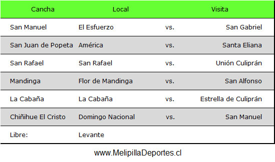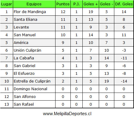 <div class="alert alert-warning"><strong>Resultados 1ª fecha</strong></div> <img class="alignnone wp-image-59581 size-full" src="https://www.melipilladeportes.cl/3.0/wp-content/uploads/2026/02/fc26003.jpg" alt="" width="557" height="553" data-pin-no-hover="true" /> <div class="alert alert-warning"><strong>Tabla de posiciones</strong></div> <img class="alignnone wp-image-59582 size-full" src="https://www.melipilladeportes.cl/3.0/wp-content/uploads/2026/02/fc26004.jpg" alt="" width="449" height="401" data-pin-no-hover="true" /> <div class="alert alert-warning"><strong>Programación 2ª fecha, domingo 15 de febrero de 2026 desde las 13.00 horas</strong></div> <img class="alignnone wp-image-59583 size-full" src="https://www.melipilladeportes.cl/3.0/wp-content/uploads/2026/02/fc26005.jpg" alt="" width="549" height="325" data-pin-no-hover="true" />