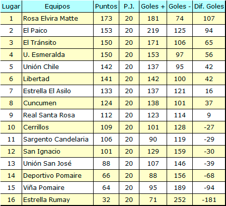 Tabla de posiciones
