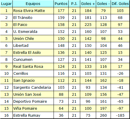 Tabla de posiciones