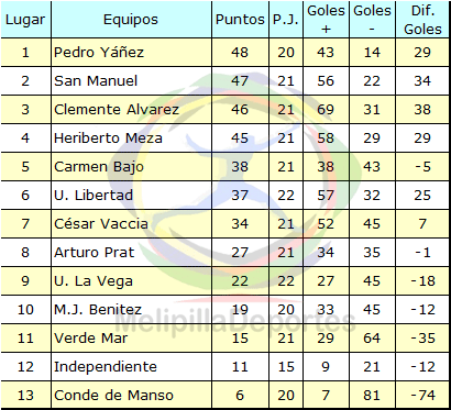 Programación 24ª fecha, domingo 25 de octubre