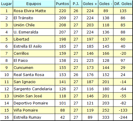 Tablas de posiciones