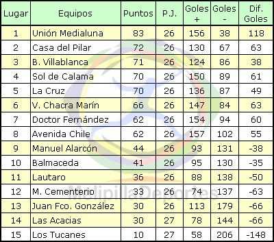 Tabla de posiciones