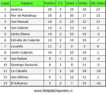 <div class="alert alert-warning"><strong>Resultados 2ª fecha</strong></div> <img class="alignnone wp-image-59663 size-full" src="https://www.melipilladeportes.cl/3.0/wp-content/uploads/2026/02/fc26007.jpg" alt="" width="557" height="553" data-pin-no-hover="true" /> <div class="alert alert-warning"><strong>Tabla de posiciones</strong></div> <img class="alignnone wp-image-59664 size-full" src="https://www.melipilladeportes.cl/3.0/wp-content/uploads/2026/02/fc26008.jpg" alt="" width="449" height="401" data-pin-no-hover="true" /> <div class="alert alert-warning"><strong>Programación 3ª fecha, domingo 22 de febrero de 2026 desde las 13.00 horas</strong></div> <img class="alignnone wp-image-59665 size-full" src="https://www.melipilladeportes.cl/3.0/wp-content/uploads/2026/02/fc26009.jpg" alt="" width="549" height="325" data-pin-no-hover="true" />