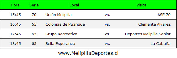 <div class="alert alert-warning"><strong>Resultados 2ª fecha</strong></div> <img class="alignnone wp-image-59614 size-full" src="https://www.melipilladeportes.cl/3.0/wp-content/uploads/2026/02/vs26006.jpg" alt="" width="437" height="341" data-pin-no-hover="true" /> [gallery columns="2" size="medium" ids="59615,59616"] <div class="alert alert-warning"><strong>Tablas de posiciones</strong></div> <img class="alignnone wp-image-59617 size-full" src="https://www.melipilladeportes.cl/3.0/wp-content/uploads/2026/02/vs26007.jpg" alt="" width="571" height="209" data-pin-no-hover="true" /> <div class="alert alert-warning"><strong>Programación 3ª fecha, sábado 21 de febrero de 2026, estadio Balmaceda</strong></div> <img class="alignnone wp-image-59618 size-full" src="https://www.melipilladeportes.cl/3.0/wp-content/uploads/2026/02/vs26008.jpg" alt="" width="603" height="199" data-pin-no-hover="true" />
