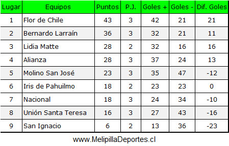 <div class="alert alert-warning"><strong>Resultados 3ª fecha</strong></div> <img class="alignnone wp-image-60226 size-full" src="https://www.melipilladeportes.cl/3.0/wp-content/uploads/2026/04/fm26011.jpg" alt="" width="623" height="425" data-pin-no-hover="true" /> <div class="alert alert-warning"><strong>Tabla de posiciones</strong></div> <img class="alignnone wp-image-60227 size-full" src="https://www.melipilladeportes.cl/3.0/wp-content/uploads/2026/04/fm26012.jpg" alt="" width="449" height="287" data-pin-no-hover="true" /> <div class="alert alert-warning"><strong>Programación 4ª fecha, domingo 12 de abril de 2026</strong></div> <img class="alignnone wp-image-60228 size-full" src="https://www.melipilladeportes.cl/3.0/wp-content/uploads/2026/04/fm26013.jpg" alt="" width="666" height="289" data-pin-no-hover="true" />