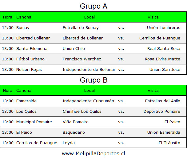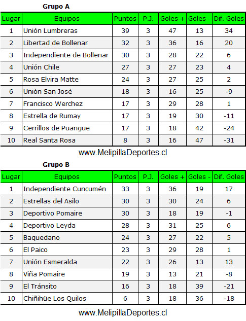 <div class="alert alert-warning"><strong>Resultados 3ª fecha</strong></div> <img class="alignnone wp-image-57869 size-full" src="https://www.melipilladeportes.cl/3.0/wp-content/uploads/2025/10/sj25113.jpg" alt="" width="668" height="927" data-pin-no-hover="true" /> <div class="alert alert-warning"><strong>Tablas de posiciones</strong></div> <img class="alignnone wp-image-57870 size-full" src="https://www.melipilladeportes.cl/3.0/wp-content/uploads/2025/10/sj25114.jpg" alt="" width="485" height="633" data-pin-no-hover="true" /> <div class="alert alert-warning"><strong>Programación 4ª fecha, domingo 5 de octubre de 2025</strong></div> <img class="alignnone wp-image-57871 size-full" src="https://www.melipilladeportes.cl/3.0/wp-content/uploads/2025/10/sj25115.jpg" alt="" width="608" height="516" data-pin-no-hover="true" />
