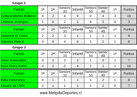 <div class="alert alert-warning"><strong>Resultados 3ª fecha</strong></div> <img class="alignnone wp-image-59483 size-full" src="https://www.melipilladeportes.cl/3.0/wp-content/uploads/2026/02/va26011.jpg" alt="" width="572" height="405" data-pin-no-hover="true" /> <div class="alert alert-warning"><strong>Tablas de posiciones</strong></div> <img class="alignnone wp-image-59484 size-full" src="https://www.melipilladeportes.cl/3.0/wp-content/uploads/2026/02/va26013.jpg" alt="" width="443" height="415" data-pin-no-hover="true" /> <div class="alert alert-warning"><strong>Programación 4ª fecha, domingo 8 de febrero de 2026</strong></div> <img class="alignnone wp-image-59485 size-full" src="https://www.melipilladeportes.cl/3.0/wp-content/uploads/2026/02/va26012.jpg" alt="" width="636" height="282" data-pin-no-hover="true" />