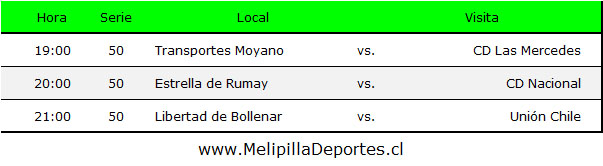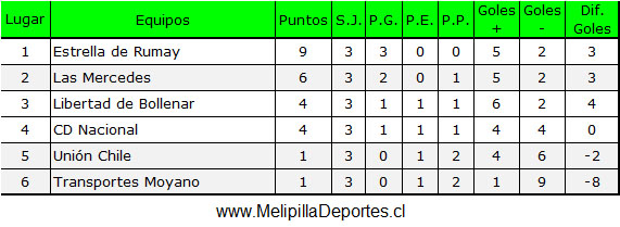 <div class="alert alert-warning"><strong>Resultados 3ª fecha</strong></div> <img class="alignnone wp-image-59674 size-full" src="https://www.melipilladeportes.cl/3.0/wp-content/uploads/2026/02/ad26011.jpg" alt="" width="434" height="371" data-pin-no-hover="true" /> <div class="alert alert-warning"><strong>Tablas de posiciones</strong></div> <img class="alignnone wp-image-59675 size-full" src="https://www.melipilladeportes.cl/3.0/wp-content/uploads/2026/02/ad26012.jpg" alt="" width="571" height="209" data-pin-no-hover="true" /> <div class="alert alert-warning"><strong>Programación 4ª fecha, sábado 28 de febrero de 2026</strong></div> <img class="alignnone wp-image-59676 size-full" src="https://www.melipilladeportes.cl/3.0/wp-content/uploads/2026/02/ad26013.jpg" alt="" width="603" height="166" data-pin-no-hover="true" />