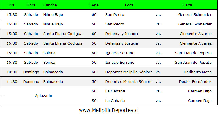 <div class="alert alert-warning"><strong>Resultados 3ª Fecha</strong></div> <img class="alignnone wp-image-60403 size-full" src="https://www.melipilladeportes.cl/3.0/wp-content/uploads/2026/04/ud26013.jpg" alt="" width="473" height="253" data-pin-no-hover="true" /> <img class="alignnone wp-image-60404 size-full" src="https://www.melipilladeportes.cl/3.0/wp-content/uploads/2026/04/ud26014.jpg" alt="" width="473" height="232" data-pin-no-hover="true" /> <div class="alert alert-warning"><strong>Tabla de posiciones</strong></div> <img class="alignnone wp-image-60405 size-full" src="https://www.melipilladeportes.cl/3.0/wp-content/uploads/2026/04/ud26015.jpg" alt="" width="571" height="353" data-pin-no-hover="true" /> <div class="alert alert-warning"><strong>Programación 4ª fecha, sábado 25 y domingo 26 de abril de 2026</strong></div> <img class="alignnone wp-image-60406 size-full" src="https://www.melipilladeportes.cl/3.0/wp-content/uploads/2026/04/ud26016.jpg" alt="" width="751" height="397" data-pin-no-hover="true" />