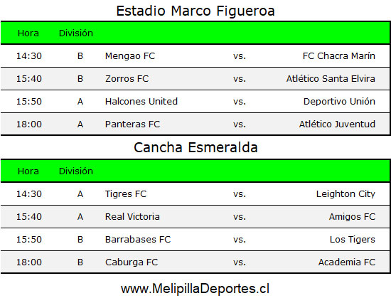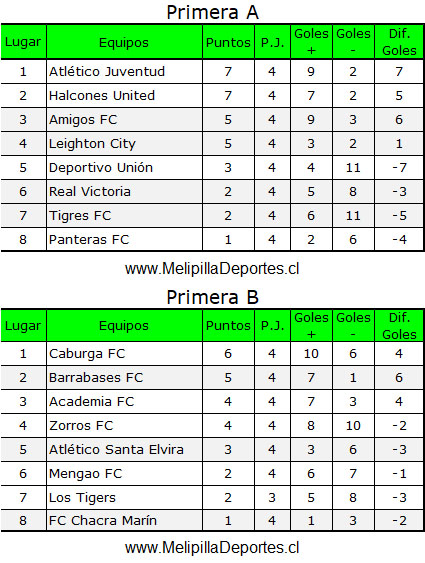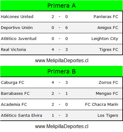 Por la Primera División A, el conjunto de Halcones United derrotó por 2-0 a Panteras FC con las anotaciones de Bastián Muñoz y Nicolás Muñoz.