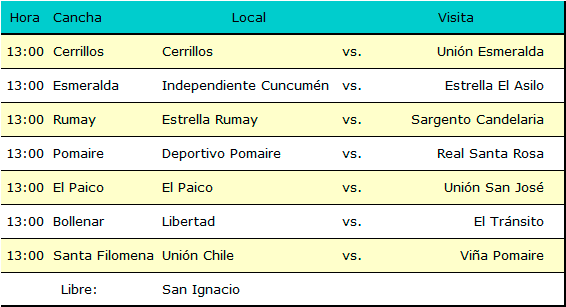 • Programación 5ª fecha, domingo 29 de octubre