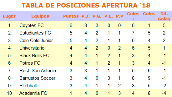 En el partido de fondo midieron fuerzas Academia FC y Black Bulls FC, toso comenzó bien para los “Toros” que se adelantaron por intermedio de Dante Ríos pero los académicos lograron emparejar con la conquista de Felipe Jerez, la intensidad del juego se mantenía y Héctor Quintanilla anotaba el segundo gol de Black Bulls FC pero nuevamente Jerez desataba los abrazos en Academia FC para el empate final a dos goles.