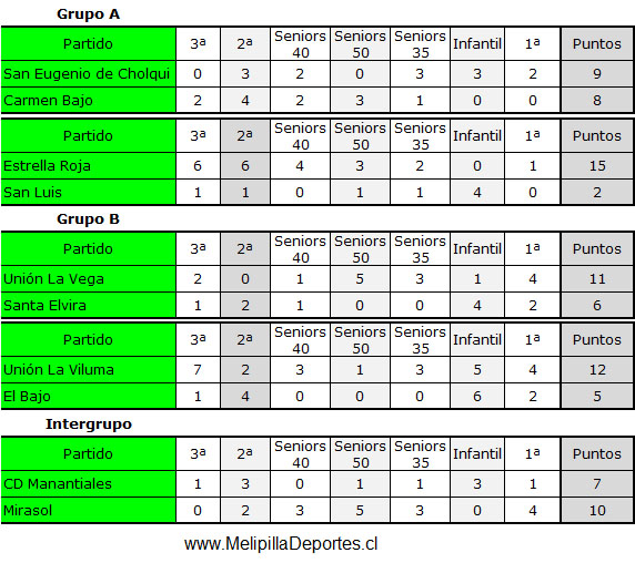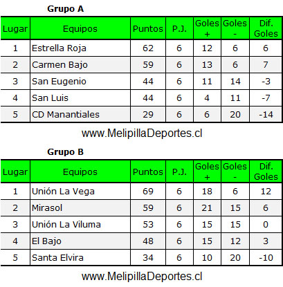 <div class="alert alert-warning"><strong>Resultados 6ª Fecha</strong></div> <img class="alignnone wp-image-59721 size-full" src="https://www.melipilladeportes.cl/3.0/wp-content/uploads/2026/02/vc26023.jpg" alt="" width="572" height="508" data-pin-no-hover="true" /> <div class="alert alert-warning"><strong>Tablas de posiciones</strong></div> <img class="alignnone wp-image-59722 size-full" src="https://www.melipilladeportes.cl/3.0/wp-content/uploads/2026/02/vc26024.jpg" alt="" width="409" height="415" data-pin-no-hover="true" /> <div class="alert alert-warning"><strong>Programación 7ª fecha, domingo 1 de marzo de 2026</strong></div> <img class="alignnone wp-image-59723 size-full" src="https://www.melipilladeportes.cl/3.0/wp-content/uploads/2026/02/vc26025.jpg" alt="" width="569" height="375" data-pin-no-hover="true" />