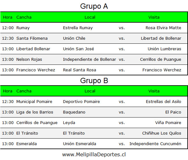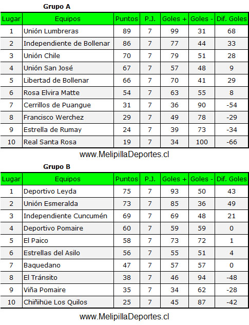 <div class="alert alert-warning"><strong>Resultados 7ª fecha</strong></div> <img class="alignnone wp-image-58393 size-full" src="https://www.melipilladeportes.cl/3.0/wp-content/uploads/2025/10/sj25132.jpg" alt="" width="668" height="927" data-pin-no-hover="true" /> <div class="alert alert-warning"><strong>Tablas de posiciones</strong></div> <img class="alignnone wp-image-58394 size-full" src="https://www.melipilladeportes.cl/3.0/wp-content/uploads/2025/10/sj25133.jpg" alt="" width="485" height="633" data-pin-no-hover="true" /> <div class="alert alert-warning"><strong>Programación 8ª fecha, domingo 2 de noviembre de 2025</strong></div> <img class="alignnone wp-image-58395 size-full" src="https://www.melipilladeportes.cl/3.0/wp-content/uploads/2025/10/sj25134.jpg" alt="" width="608" height="516" data-pin-no-hover="true" />