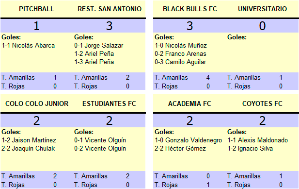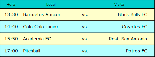 En el primer partido de la tarde deportiva en los pastos de Soinca el conjunto de Restaurant San Antonio derrotó por 3-1 a los celestes de Pitchball, la apertura de la cuenta para los pomairinos llegó por intermedio de Jorge Salazar pero Nicolás Abarca anotó el empate transitorio, un doblete de Ariel Peña le dio los dos puntos a Restaurant San Antonio que les permite instalarse en el segundo lugar de la clasificación.