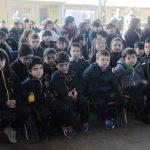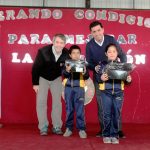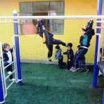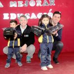 El gimnasio techado del colegio San José de la Villa estaba lleno de color y alegría, sus alumnos en conjunto a los padres y apoderados eran los testigos de la inauguración de la nueva cancha de pasto sintético y de juegos modulares, además cada uno de los pequeños recibía como apoyo social un par de zapatillas y un polar.