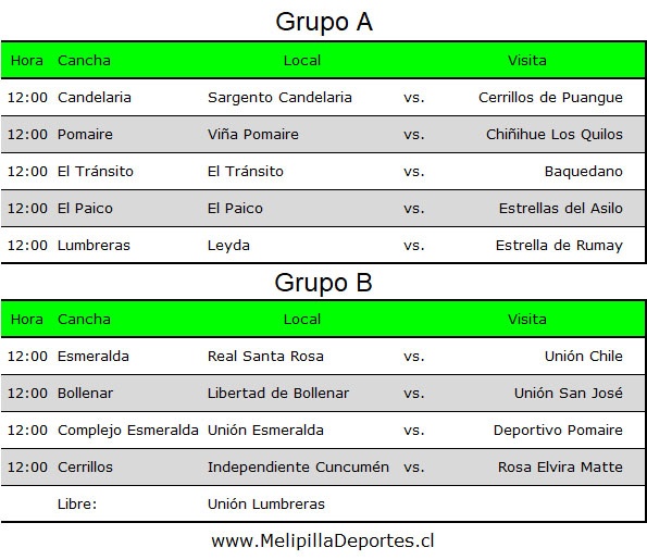 En el grupo B están: Deportivo Pomaire, Independiente de Cuncumén, Libertad de Bollenar, Real Santa Rosa, Rosa Elvira Matte, Unión Chile, Unión Esmeralda, Unión Lumbreras y Unión San José.