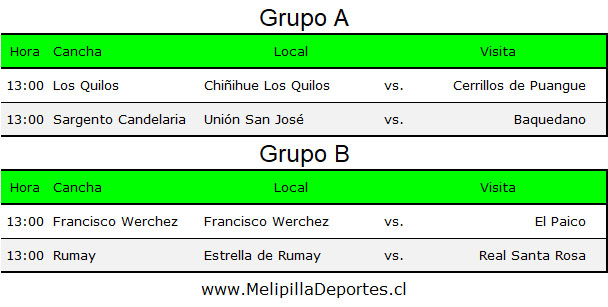 <div class="alert alert-warning"><strong>Programación 1ª fecha, domingo 18 de enero de 2026</strong></div> <img class="alignnone wp-image-59410 size-full" src="https://www.melipilladeportes.cl/3.0/wp-content/uploads/2026/01/vsj26001.jpg" alt="" width="608" height="307" data-pin-no-hover="true" />