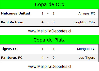 Luego fue el turno de la Copa de Oro donde en la primera llave Halcones United y Amigos FC igualaron a un gol con las anotaciones de Benjamín Muñoz y Ariel Peña, respectivamente. En la definición desde loa 12 pasos fue más efectivo Halcones United ´para meterse en la final.