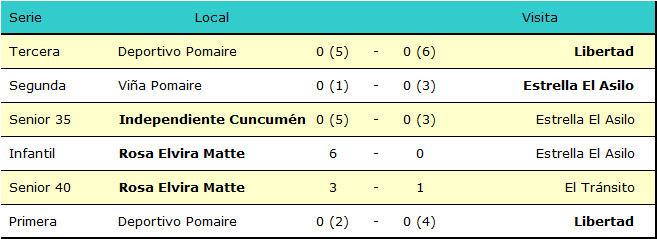 En tercera serie entraron al campo de juego las oncenas de Deportivo Pomaire y Libertad, un partido entretenido con peligro en ambas áreas, pero que los delanteros no pudieron concretar o se encontraron con dos arqueros inspirados para terminar igualados sin goles, en la definición a penales se impusieron los de Bollenar por 6-5.