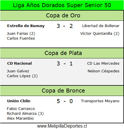 En tanto, la Copa de Bronce tuvo un claro dominador: Unión Chile, que se impuso categóricamente por 5-0 sobre Transportes Moyano, destacando la gran actuación de Richard Almarza, autor de un triplete, acompañado por los goles de Fabio Carrasco y Alex Marambio.