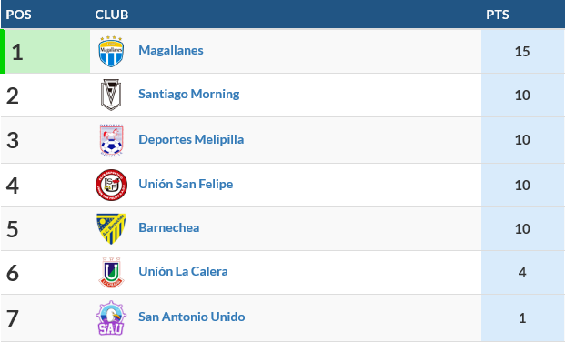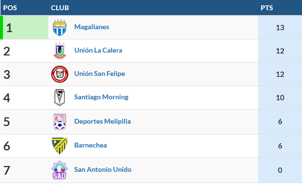 - Tabla de Posiciones sub 19