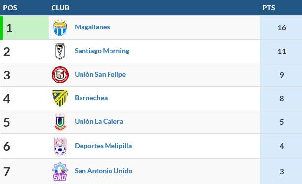 - Tabla de Posiciones sub 16