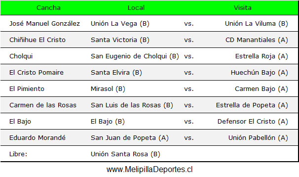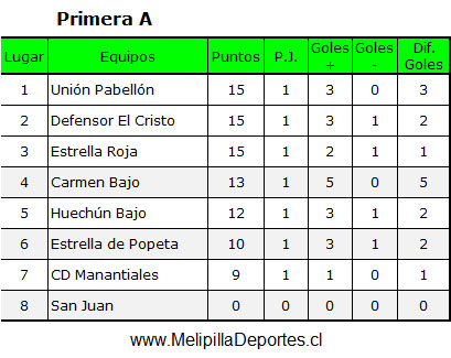 <div class="alert alert-warning"><strong>Resultados 1ª fecha</strong></div> <img class="alignnone wp-image-60347 size-full" src="https://www.melipilladeportes.cl/3.0/wp-content/uploads/2026/04/fc26003.jpg" alt="" width="617" height="743" data-pin-no-hover="true" /> <div class="alert alert-warning"><strong>Tablas de posiciones</strong></div> <img class="alignnone wp-image-60348 size-full" src="https://www.melipilladeportes.cl/3.0/wp-content/uploads/2026/04/fc26004.jpg" alt="" width="409" height="325" data-pin-no-hover="true" /> <img class="alignnone size-full wp-image-60349" src="https://www.melipilladeportes.cl/3.0/wp-content/uploads/2026/04/fc26005.jpg" alt="" width="409" height="316" /> <div class="alert alert-warning"><strong>Programación 2ª Fecha, domingo 19 de abril de 2026</strong></div> <img class="alignnone wp-image-60350 size-full" src="https://www.melipilladeportes.cl/3.0/wp-content/uploads/2026/04/fc26006.jpg" alt="" width="606" height="358" data-pin-no-hover="true" />