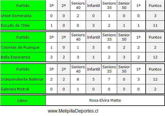 <div class="alert alert-warning"><strong>Resultados 4ª fecha</strong></div> <img class="alignnone wp-image-60382 size-full" src="https://www.melipilladeportes.cl/3.0/wp-content/uploads/2026/04/ab26016.jpg" alt="" width="572" height="403" data-pin-no-hover="true" /> <div class="alert alert-warning"><strong>Tabla de posiciones</strong></div> <img class="alignnone wp-image-60383 size-full" src="https://www.melipilladeportes.cl/3.0/wp-content/uploads/2026/04/ab26017.jpg" alt="" width="443" height="274" data-pin-no-hover="true" /> <div class="alert alert-warning"><strong>Programación 5ª fecha, domingo 26 de abril de 2026</strong></div> <img class="alignnone wp-image-60384 size-full" src="https://www.melipilladeportes.cl/3.0/wp-content/uploads/2026/04/ab26018.jpg" alt="" width="636" height="231" data-pin-no-hover="true" />