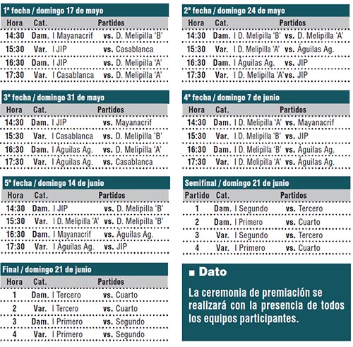 Además del retraso también se tuvo que adecuar el calendario por la salida de un equipo que participaría defendiendo los colores de Águilas Agustinas pero sus jugadores no tenían residencia en Melipilla.