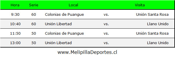 <div class="alert alert-warning"><strong>Programación Semifinales, domingo 1 de febrero de 2026 cancha Puertas Coloradas</strong></div> <img class="alignnone wp-image-59441 size-full" src="https://www.melipilladeportes.cl/3.0/wp-content/uploads/2026/01/cp26005.jpg" alt="" width="603" height="199" data-pin-no-hover="true" />