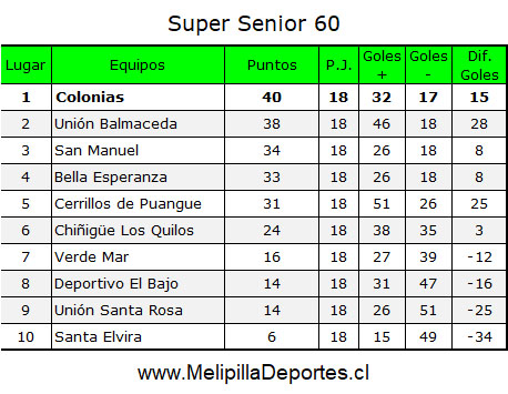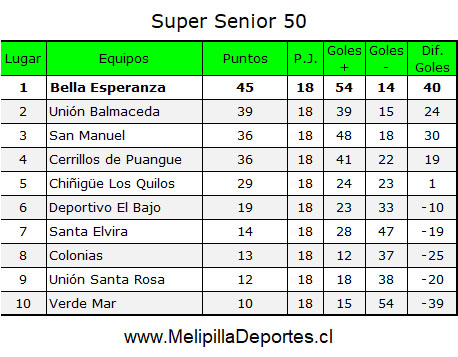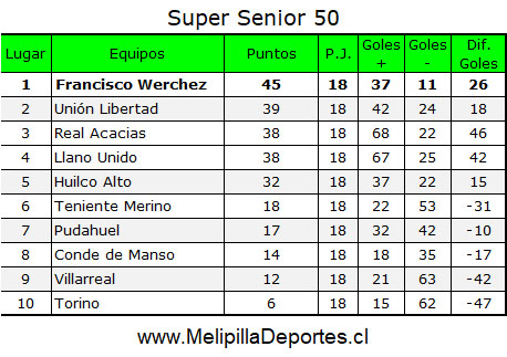 10ª fecha Campeonato Oficial ’25 Asociación Super Senior Melipilla 50