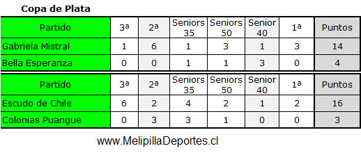 <div class="alert alert-warning"><strong>Resultados Semifinales</strong></div> <img class="alignnone wp-image-59790 size-full" src="https://www.melipilladeportes.cl/3.0/wp-content/uploads/2026/03/va26034.jpg" alt="" width="518" height="221" data-pin-no-hover="true" /><img class="alignnone wp-image-59791 size-full" src="https://www.melipilladeportes.cl/3.0/wp-content/uploads/2026/03/va26035.jpg" alt="" width="518" height="220" data-pin-no-hover="true" /> <div class="alert alert-warning"><strong>Resultados Semifinales Infantiles</strong></div> <img class="alignnone wp-image-59792 size-full" src="https://www.melipilladeportes.cl/3.0/wp-content/uploads/2026/03/va26036.jpg" alt="" width="672" height="187" data-pin-no-hover="true" /> <div class="alert alert-warning"><strong>Programación Final Copa de Plata, domingo 8 de marzo de 2026</strong></div> <img class="alignnone wp-image-59793 size-full" src="https://www.melipilladeportes.cl/3.0/wp-content/uploads/2026/03/va26037.jpg" alt="" width="602" height="159" data-pin-no-hover="true" />