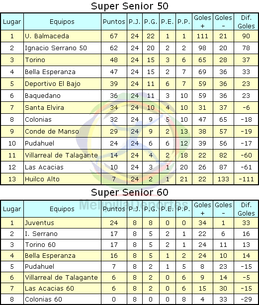 Programación 1ª fecha Campeonato Clausura Seniors 50, domingo 2 de noviembre