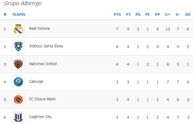 - Tabla de Posiciones Grupo Albirrojo