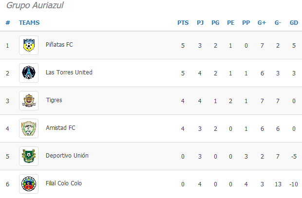 - Tabla de Posiciones Grupo Auriazul
