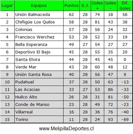Por otro lado, los equipos que quedaron en los puestos restantes (Santa Rosa de Chocalán, Pudahuel, Las Acacias, Huilco Alto, Conde de Manso, Villarreal y Torino) se enfrascarán en una liguilla de consuelo. En esta fase alternativa, estos equipos competirán por la Copa “José Briones Berríos”, buscando dejar su marca en el campeonato.